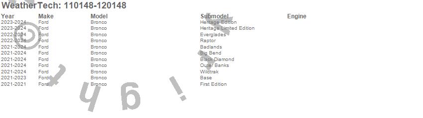 Below is an abbreviated list of applications for the MudFlap No-Drill DigitalFit MudFlap Kit.Bronco, Ford, 2024, 2023, 2022, 2021