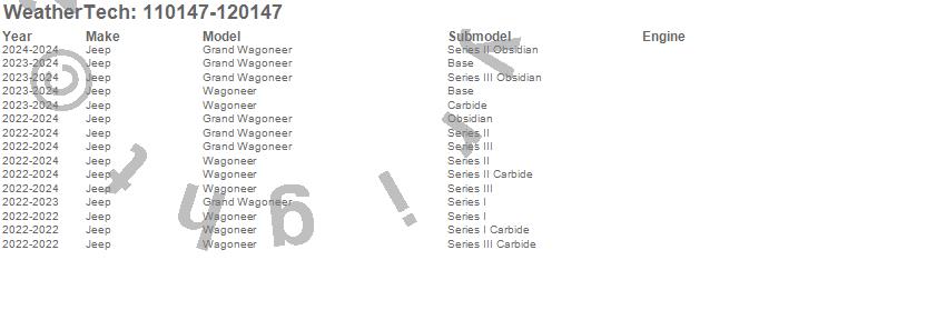 Below is an abbreviated list of applications for the MudFlap No-Drill DigitalFit MudFlap Kit.Grand Wagoneer, Wagoneer, Jeep, 2025, 2024, 2023, 2022