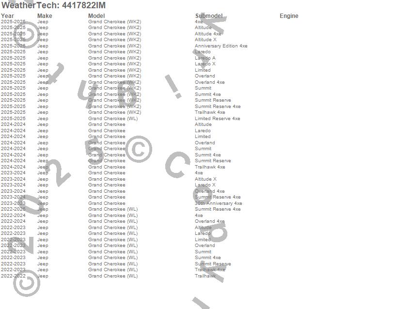 Below is an abbreviated list of applications for the FloorLiner HP.Grand Cherokee, Grand Cherokee (WK2), Grand Cherokee (WL), Jeep, 2025, 2024, 2023, 2022
