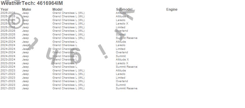 Below is an abbreviated list of applications for the FloorLiner HP.Grand Cherokee L, Grand Cherokee L (WL), Jeep, 2025, 2024, 2023, 2022, 2021