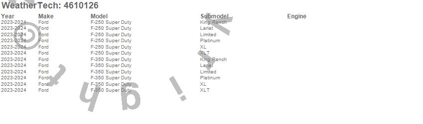 Below is an abbreviated list of applications for the FloorLiner DigitalFit.F-250 Super Duty, F-350 Super Duty, F-450 Super Duty, Ford, 2026, 2025, 2024, 2023