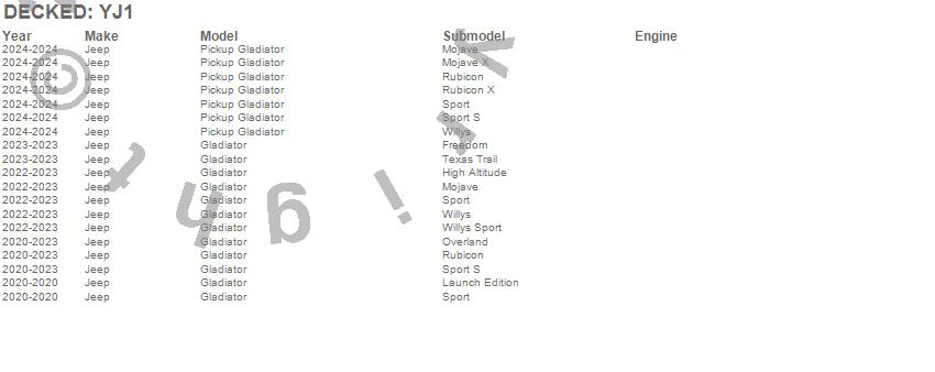Below is an abbreviated list of applications for the DECKED One Drawer Storage System.Gladiator, Pickup Gladiator, Jeep, 2025, 2024, 2023, 2022, 2021, 2020