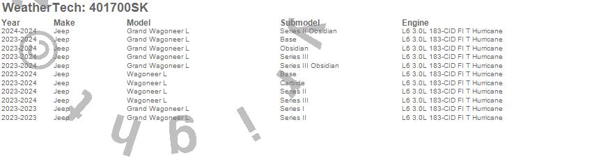 Below is an abbreviated list of applications for the Cargo Liner w/Bumper Protector.Grand Wagoneer L, Wagoneer L, Jeep, 2024, 2023
