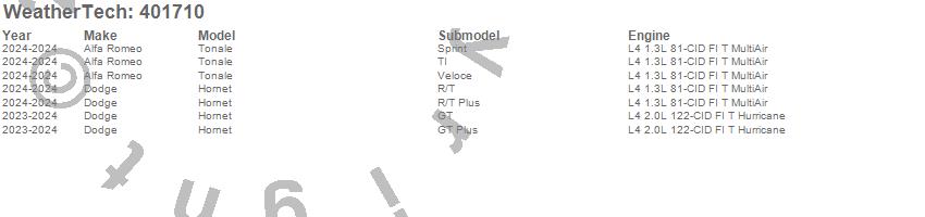Below is an abbreviated list of applications for the Cargo Liner.Hornet, Tonale, Alfa Romeo, Dodge, 2025, 2024, 2023