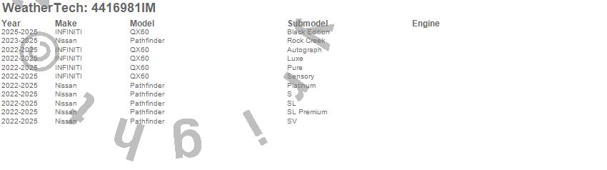 Below is an abbreviated list of applications for the FloorLiner HP.Pathfinder, QX60, INFINITI, Nissan, 2026, 2025, 2024, 2023, 2022
