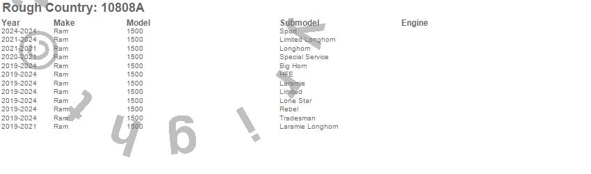 Brand: Rough CountryPart Number: 10808ABumper- Front Type: w/Skid PlateUPC: 840269904615