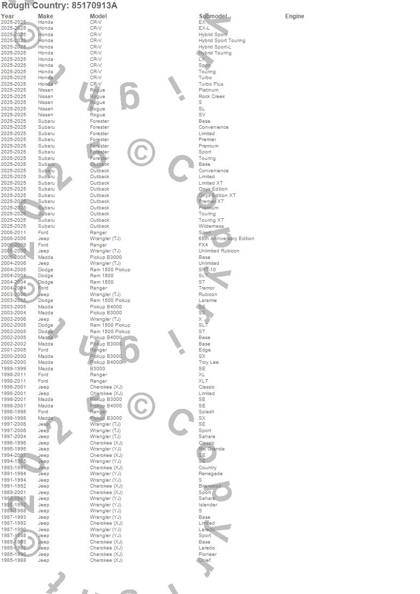 Below is an abbreviated list of applications for the Series 85 Wheel.B3000, B4000, Cherokee (XJ), CR-V, Forester, Outback, Ram 1500, Ranger, Rogue, Wrangler (TJ), Wrangler (YJ), Dodge, Ford, Honda, Jeep, Mazda, Nissan, Subaru, 2025, 2011