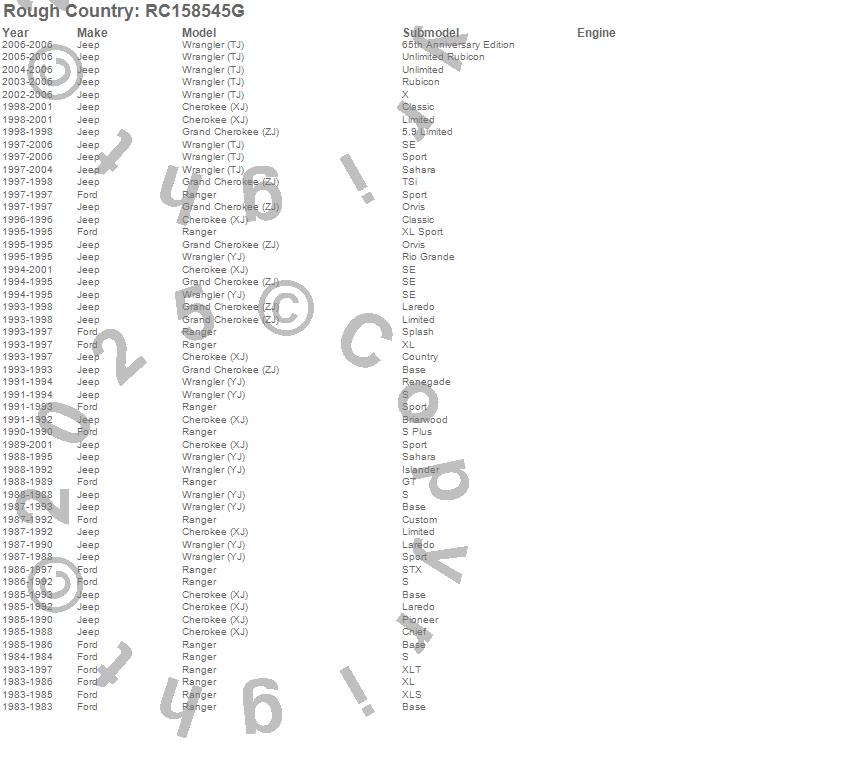 Below is an abbreviated list of applications for the Steel Wheel.Cherokee (XJ), Grand Cherokee (ZJ), Ranger, Wrangler (TJ), Wrangler (YJ), Ford, Jeep, 2006, 2005, 2004, 2003, 2002, 2001, 2000, 1999, 1998, 1997, 1996, 1995, 1994
