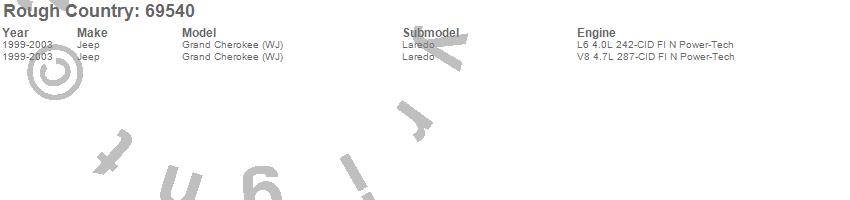 Below is an abbreviated list of applications for the Suspension Lift Kit w/Shocks.Grand Cherokee (WJ), Jeep, 2003, 2002, 2001, 2000, 1999