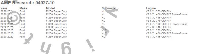 Below is an abbreviated list of applications for the PowerStep Plug-N-Play System.F-250 Super Duty, F-350 Super Duty, Ford, 2021, 2020