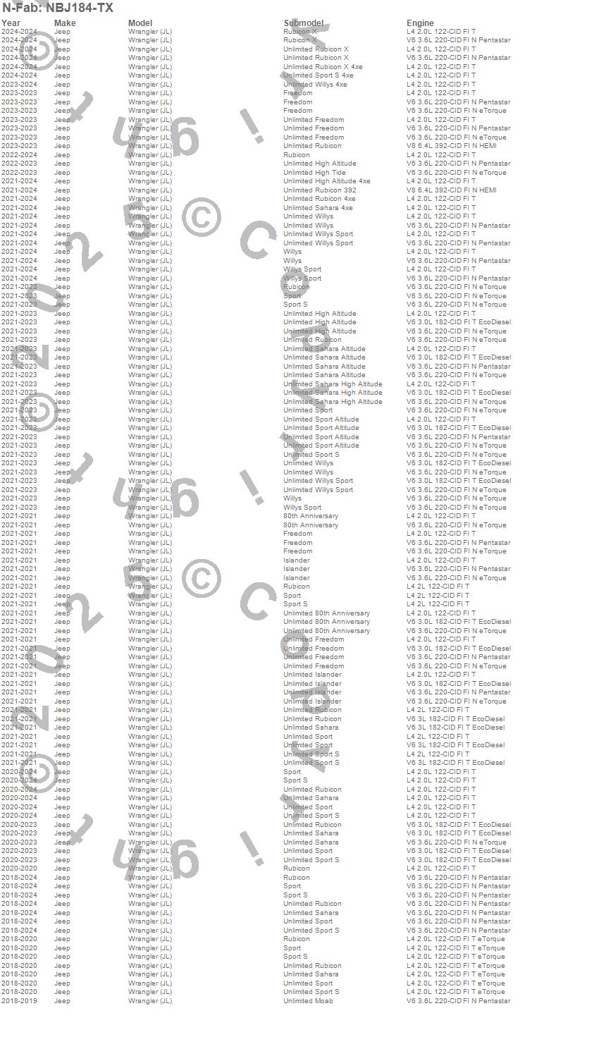 Below is an abbreviated list of applications for the Roan Running Board.Wrangler, Wrangler (JL), Jeep, 2026, 2025, 2024, 2023, 2022, 2021, 2020, 2019, 2018