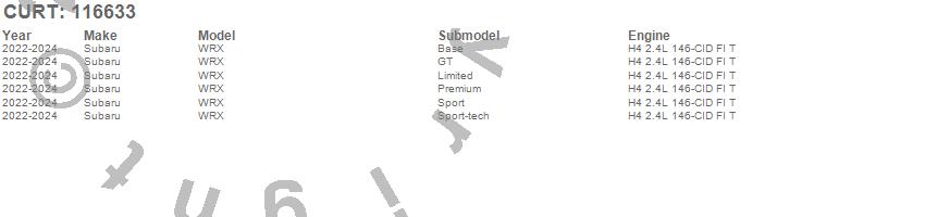 Below is an abbreviated list of applications for the Class I 1.25 in. Receiver Hitch.WRX, Subaru, 2025, 2024, 2023, 2022