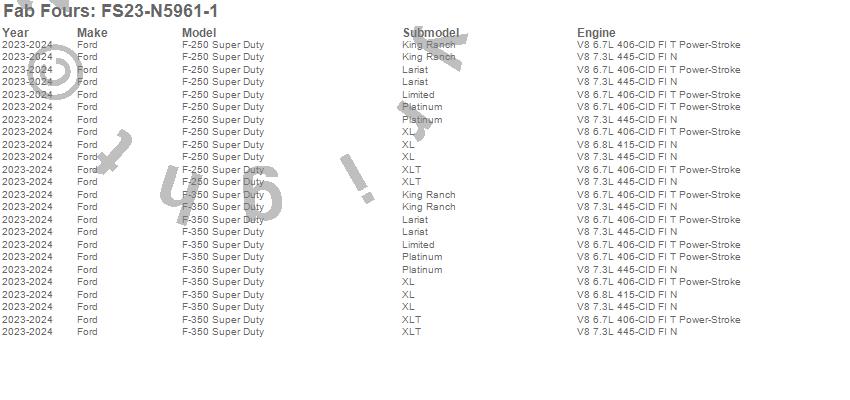 Below is an abbreviated list of applications for the Winch Mount.F-250 Super Duty, F-350 Super Duty, Ford, 2025, 2024, 2023