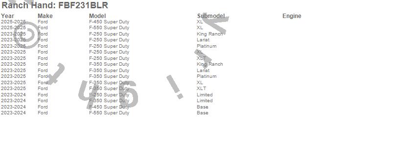 Below is an abbreviated list of applications for the Legend Series Front Bumper.F-250 Super Duty, F-350 Super Duty, F-450 Super Duty, F-550 Super Duty, Ford, 2025, 2024, 2023