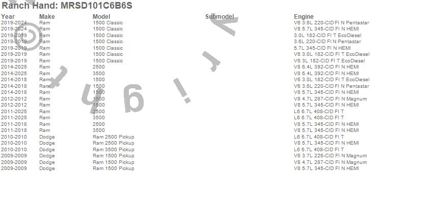 Brand: Ranch HandPart Number: MRSD101C6B6SNerf/Step Bar (Wheel to Wheel) Type: Matte Black - SteelUPC: 848917010244