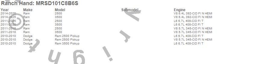Brand: Ranch HandPart Number: MRSD101C8B6SNerf/Step Bar (Wheel to Wheel) Type: Matte Black - SteelUPC: 848917010343