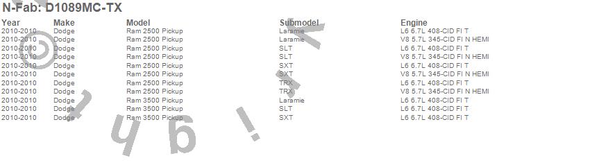 Below is an abbreviated list of applications for the Cab Length Nerf Step Bar.Ram 2500, Ram 3500, Dodge, 2010