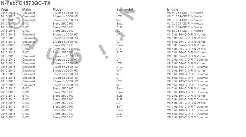 Below is an abbreviated list of applications for the Cab Length Nerf Step Bar.Sierra 2500 HD, Sierra 3500 HD, Silverado 2500 HD, Silverado 3500 HD, Chevrolet, GMC, 2018, 2017, 2016, 2015