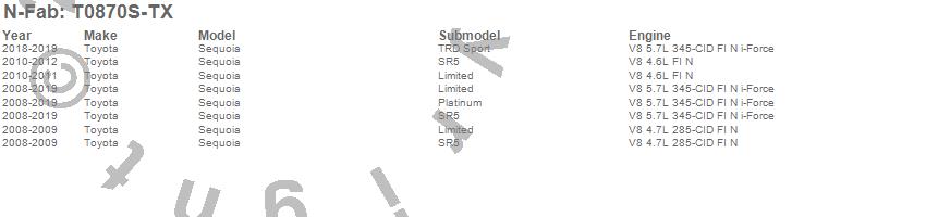 Below is an abbreviated list of applications for the Wheel To Wheel Nerf Step Bar.Sequoia, Toyota, 2019, 2018, 2017, 2016, 2015, 2014, 2013, 2012, 2011, 2010, 2009, 2008
