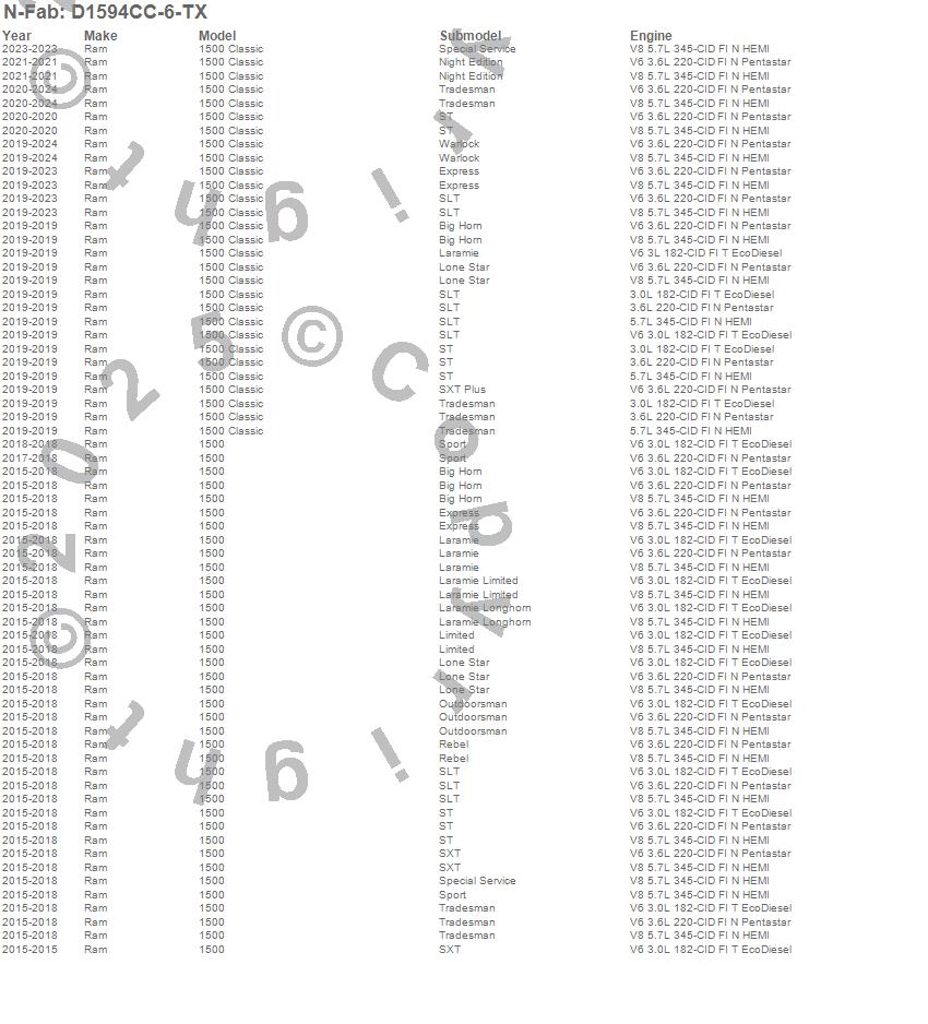 Below is an abbreviated list of applications for the Wheel To Wheel Nerf Step Bar w/Bed Access.1500, 1500 Classic, Ram, 2024, 2023, 2022, 2021, 2020, 2019, 2018, 2017, 2016, 2015