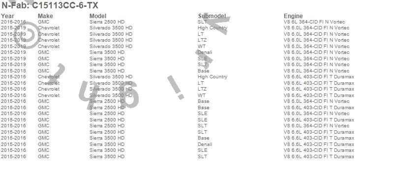 Below is an abbreviated list of applications for the Wheel To Wheel Nerf Step Bar w/Bed Access.Sierra 2500 HD, Sierra 3500 HD, Silverado 3500 HD, Chevrolet, GMC, 2019, 2018, 2017, 2016, 2015