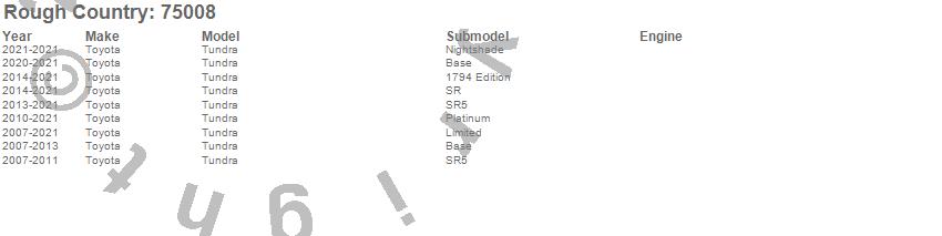 Below is an abbreviated list of applications for the Catalytic Converter Shield.Tundra, Toyota, 2021, 2020, 2019, 2018, 2017, 2016, 2015, 2014, 2013, 2012, 2011, 2010, 2009, 2008, 2007