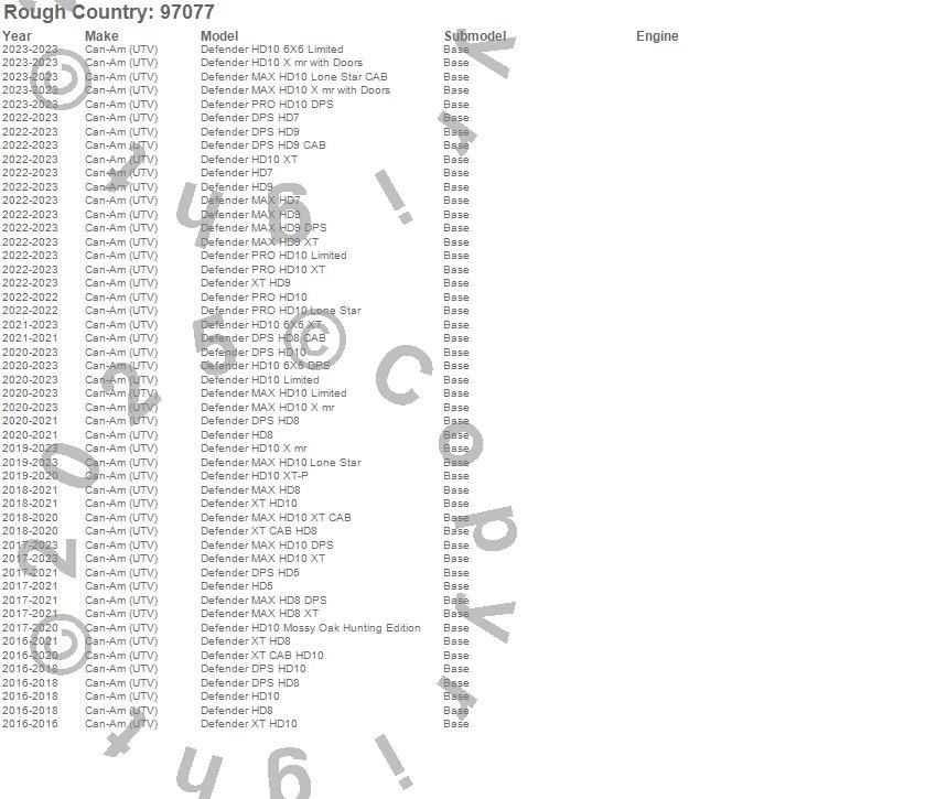 Below is an abbreviated list of applications for the Molle Panel Kit.Defender DPS HD10, Defender DPS HD5, Defender DPS HD7, Defender DPS HD8, Defender DPS HD8 CAB, Defender DPS HD9, Defender DPS HD9 CAB, Defender HD10, Defender HD10 6X6 DPS, Defender HD10 6X6 Limited, Defender HD10 6X6 XT, Defender HD10 Limited, Defender HD10 Mossy Oak Hunting Edition, Defender HD10 X mr, Defender HD10 X mr with Doors, Defender HD10 XT, Defender HD10 XT-P, Defender HD5, Defender HD7, Defender HD8
