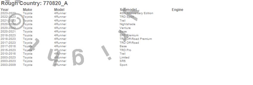 Brand: Rough CountryPart Number: 770820_AShock Absorber Type: Rear - 4.5-7 in. Lift - Extended Length 26.49 in. - Collapsed Length 15.86 in.UPC: 840269943188