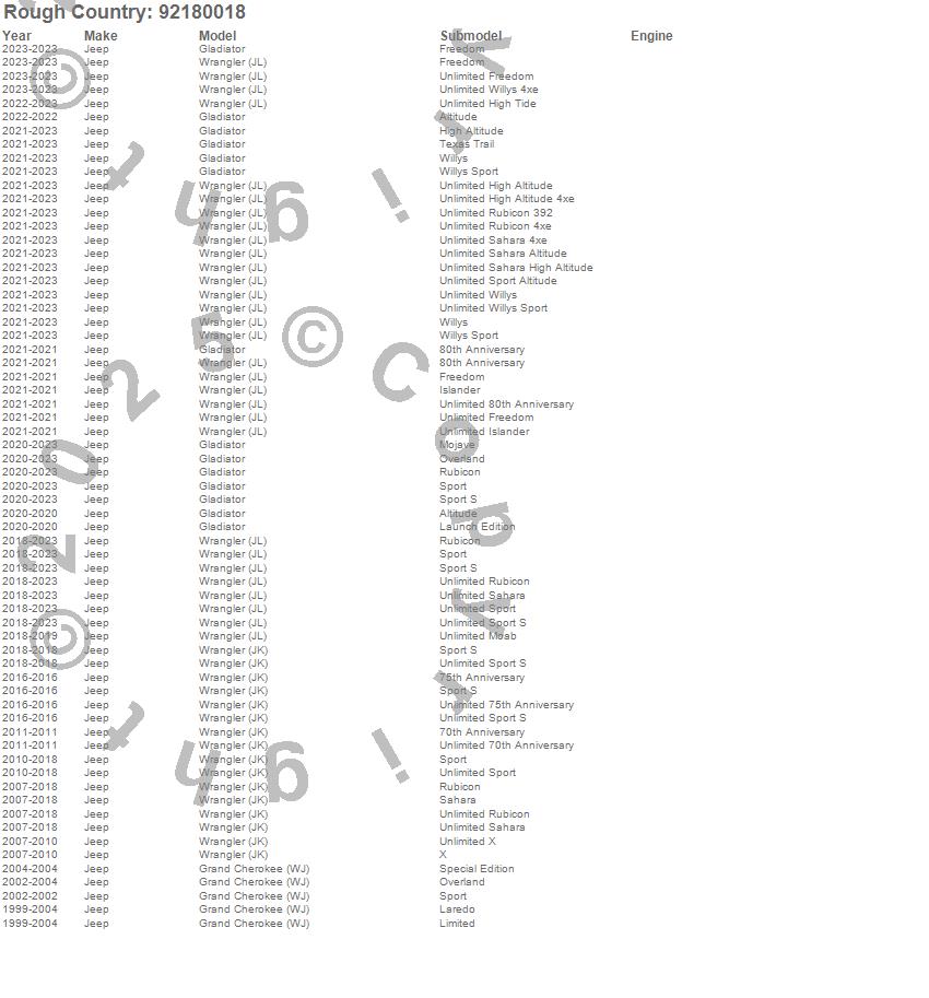 Below is an abbreviated list of applications for the Series 92 Wheel.Durango, Gladiator, Grand Cherokee (WJ), Wrangler (JK), Wrangler (JL), Dodge, Jeep, 2025, 2024, 2023, 2022, 2021, 2020, 2019, 2018, 2017, 2016, 2015, 2014, 2013
