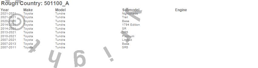 Below is an abbreviated list of applications for the Lifted N3 Struts.Tundra, Toyota, 2021, 2020, 2019, 2018, 2017, 2016, 2015, 2014, 2013, 2012, 2011, 2010, 2009, 2008, 2007
