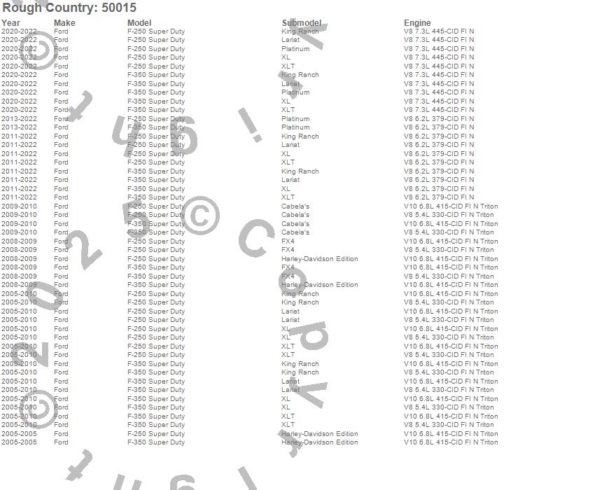 Brand: Rough CountryPart Number: 50015Lift Kit-Suspension w/Shock Type: 3 in. Lift - DieselUPC: 840269942976