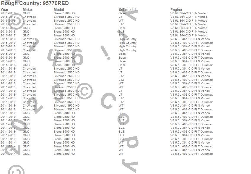 Below is an abbreviated list of applications for the Suspension Lift Kit w/Shocks.Sierra 2500 HD, Sierra 3500 HD, Silverado 2500 HD, Silverado 3500 HD, Chevrolet, GMC, 2019, 2018, 2017, 2016, 2015, 2014, 2013, 2012, 2011