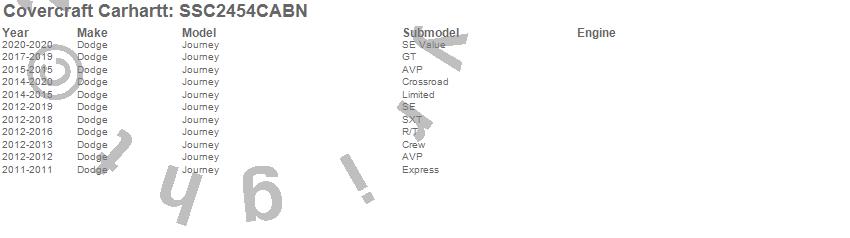 Below is an abbreviated list of applications for the Covercraft Carhartt SeatSaver.Journey, Dodge, 2020, 2019, 2018, 2017, 2016, 2015, 2014, 2013, 2012, 2011