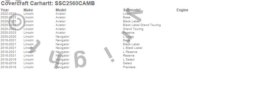 Below is an abbreviated list of applications for the Covercraft Carhartt SeatSaver.Aviator, Navigator, Lincoln, 2025, 2024, 2023, 2022, 2021, 2020, 2019, 2018