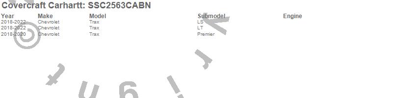 Below is an abbreviated list of applications for the Covercraft Carhartt SeatSaver.Trax, Chevrolet, 2022, 2021, 2020, 2019, 2018