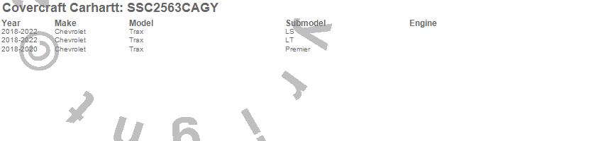 Below is an abbreviated list of applications for the Covercraft Carhartt SeatSaver.Trax, Chevrolet, 2022, 2021, 2020, 2019, 2018