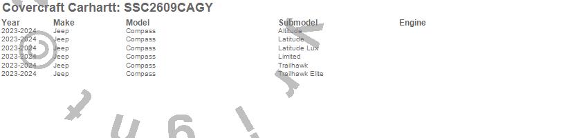 Below is an abbreviated list of applications for the Covercraft Carhartt SeatSaver.Compass, Jeep, 2025, 2024, 2023
