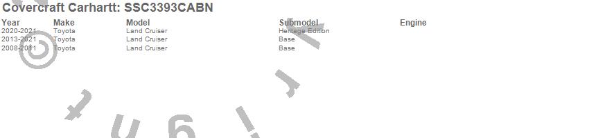 Below is an abbreviated list of applications for the Covercraft Carhartt SeatSaver.Land Cruiser, Toyota, 2021, 2020, 2019, 2018, 2017, 2016, 2015, 2014, 2013, 2011, 2010, 2009, 2008