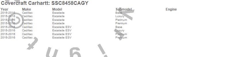 Below is an abbreviated list of applications for the Covercraft Carhartt SeatSaver.Escalade, Escalade ESV, Cadillac, 2016, 2015