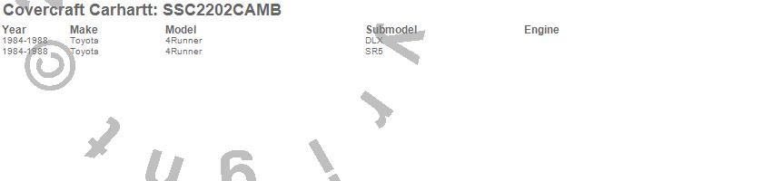 Below is an abbreviated list of applications for the Covercraft Carhartt SeatSaver.4Runner, Toyota, 1988, 1987, 1986, 1985, 1984