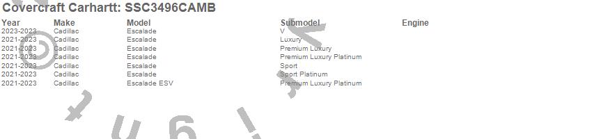 Below is an abbreviated list of applications for the Covercraft Carhartt SeatSaver.Escalade, Escalade ESV, Cadillac, 2025, 2024, 2023, 2022, 2021