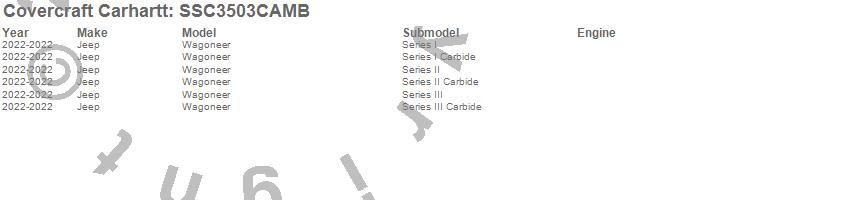 Below is an abbreviated list of applications for the Covercraft Carhartt SeatSaver.Wagoneer, Wagoneer L, Jeep, 2025, 2024, 2023, 2022
