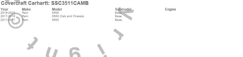 Below is an abbreviated list of applications for the Covercraft Carhartt SeatSaver.5500, Ram, 2023, 2022, 2021, 2020, 2019, 2017