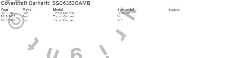 Below is an abbreviated list of applications for the Covercraft Carhartt SeatSaver.Transit Connect, Ford, 2023, 2022, 2021, 2020, 2019