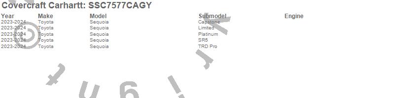Below is an abbreviated list of applications for the Covercraft Carhartt SeatSaver.Sequoia, Toyota, 2026, 2025, 2024, 2023