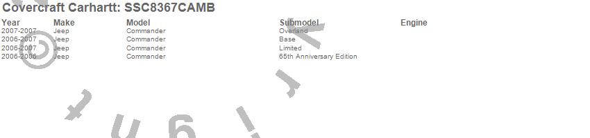 Below is an abbreviated list of applications for the Covercraft Carhartt SeatSaver.Commander, Jeep, 2007, 2006