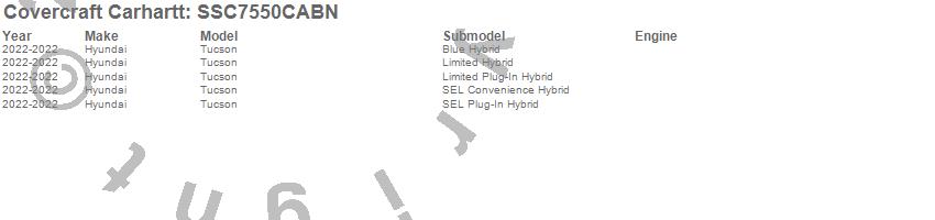 Below is an abbreviated list of applications for the Covercraft Carhartt SeatSaver.Tucson, Hyundai, 2023, 2022
