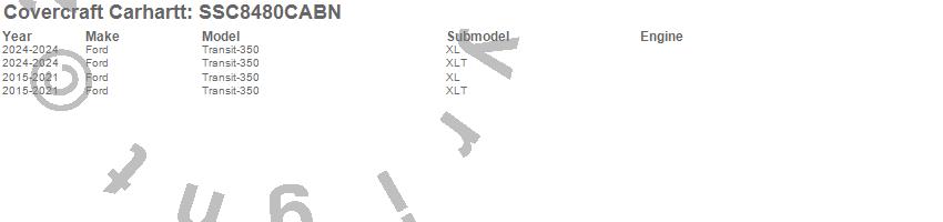 Below is an abbreviated list of applications for the Covercraft Carhartt SeatSaver.Transit-350, Transit-350 HD, Ford, 2025, 2024, 2023, 2022, 2021, 2020, 2019, 2018, 2017, 2016, 2015