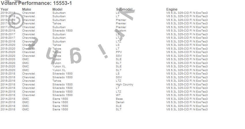 Below is an abbreviated list of applications for the MaxFlow 5 Oiled Filter Closed Box Air Intake.Sierra 1500, Silverado 1500, Suburban, Tahoe, Yukon, Yukon XL, Chevrolet, GMC, 2020, 2019, 2018, 2017, 2016, 2015, 2014