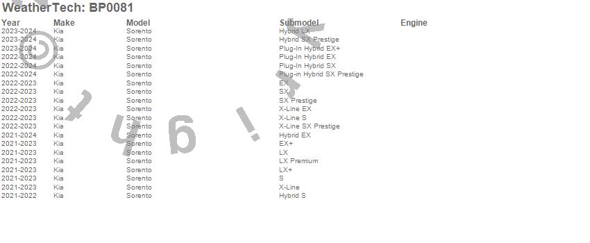 Below is an abbreviated list of applications for the BumperTopper.Sorento, Kia, 2023, 2022, 2021